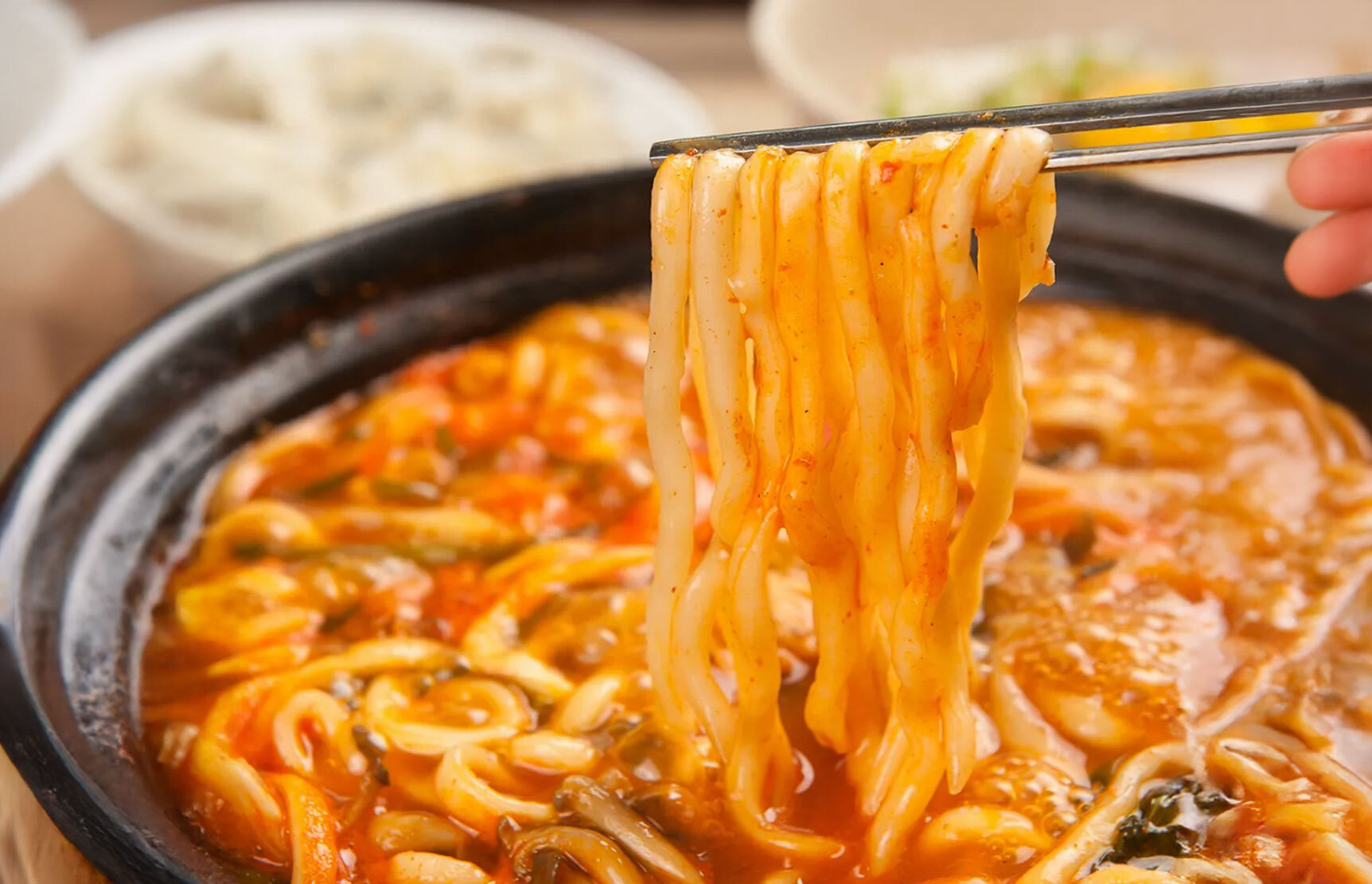 2. 물이 끓으면 '장칼국수 소스' 50g을 넣고 잘 풀어준다.